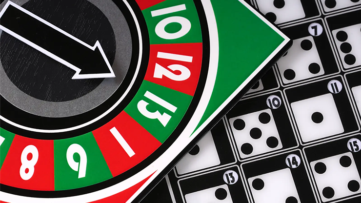 The magician first took out an envelope, explained that it was a prediction and handed it to an audience member for safekeeping. Then the magician took out a board with many numbers on it and placed a rotating arrow on top of it. Next, he invited another audience to spin the arrow.