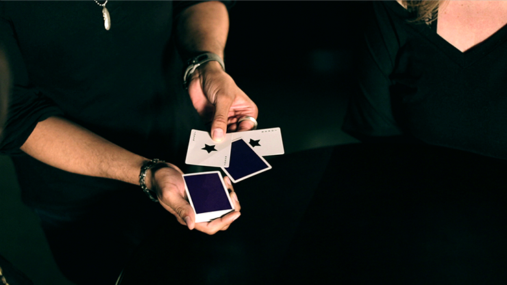 A card selected and lost into the pack. It is found just a moment later sandwiched between two ungimmicked Jokers. The sandwich then instantly changes to a royal flush. Eric will go over each phase of this beautiful routine in complete detail.
