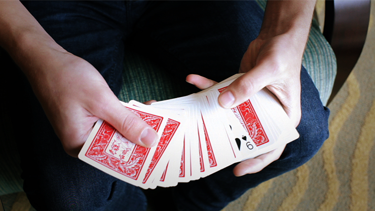 Imagine displaying a card face up in the middle of a spread of playing cards held in the hands of the magician. Then with a gentle shake, the card changes to the Chosen or even thought of playing card. The change is visually striking, happens in the open while isolated in the middle of a spread.