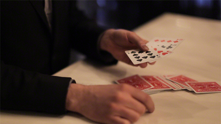 Wave Change:A rhythmic metamorphosis of one playing card into another that happens at chest height. Very easy to perform and looks better live than on camera. Your audience will love it!