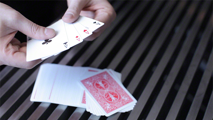 POG Production:4 aces literally jump out of a tabled deck and into your hand with a single touch of an ungimmicked pack. This is a great way to get into a 4 ace routine.
