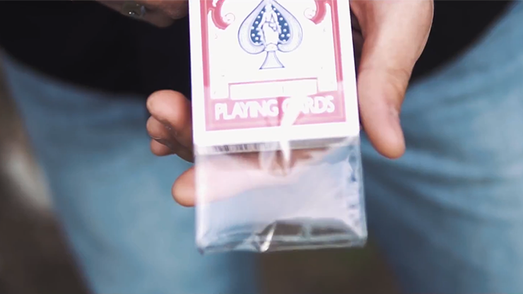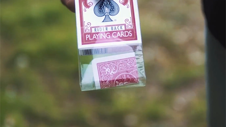 Now for the magic! The cellophane is moved forward a little bit. Then, in the blink of an eye, a folded card appears in the space created by the cellophane! The cellophane is removed by the spectator, the card is unfolded, and it's their signed card! IMPOSSIBLE!