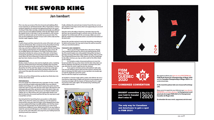 Feature artist is a young Canadian magician Jason Verners who is making a name for himself on the international scene.