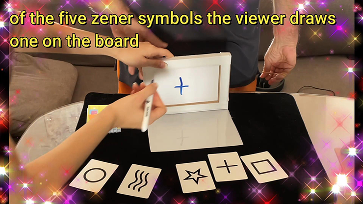 Show a small white box with a dry erase board inside. Your spectator writes down the esp symbol they have in mind and closes the lid. The lid is bound by rubber bands and shown from all around, there is no way to see what was written. You are now able to read their mind. Looks impossible.