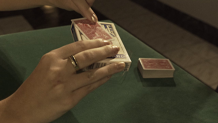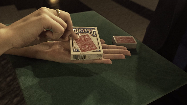 The effect begins when the magician asks a spectator to choose a card from a mini deck. This card is placed on top of a sealed standard deck held by the spectator, who is challenged to turn this card over in less than five seconds.