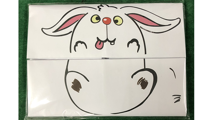 Each time you unfold the paper, it gets bigger and the illustration magically changes. Your audience will see the rabbit become a small dog, which will elongate into a dachshund, which will transform into a seal and then a chicken and finally a stork.