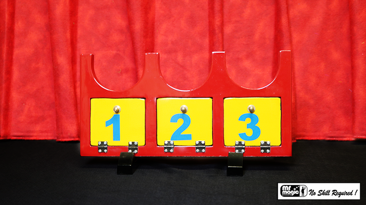 The performer draws the audience's attention to three inflated balloons of different colors (e.g., yellow, white and green) placed into a well-decorated panel standing on the table. According to the choice of the spectators, two balloons are made to burst one after another with a pin. Only one balloon out of three remains inflated. The performer now opens the small door just below the remaining balloon. It is seen that there is a vertical arrow pointing at the balloon. When the Performer opens the other two doors, no arrow is seen. Great mindreading trick to show you predicted which balloon would remain!