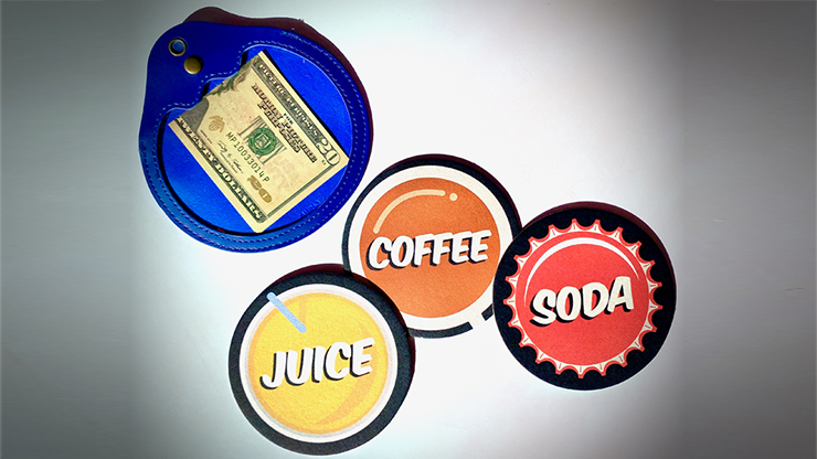 You remove three drink coasters from a smart looking blue snap case. Each coaster has a different drink printed on it; Juice, Coffee and Soda. Explain that you're going to get the spectator to choose one of the three drinks. You are SO confident that you already KNOW which drink they're going to pick you're willing to give them the $20 bill if you're wrong. But if you're right, then they have to buy you a drink. The spectator agrees to the wager, is handed the $20 to drop on their drink of choice. They make an ABSOLUTELY FREE CHOICE. You then reveal an indelible prediction left in full view from the very beginning that reveals their chosen drink!