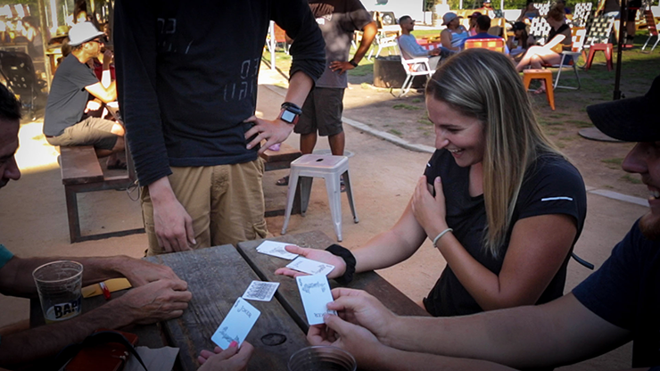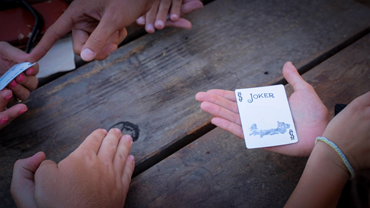Four spectators are each given a Joker to hold between their hands. The magician claims that three of the Jokers will vanish from the spectators' hands and magically join the fourth Joker. After a magical pass, all four cards remain in the spectators' hands and it appears as if the magician failed. For a surprise finish, the printed images of the three Jokers have vanished (the magician didn't fail after all) and all four Jokers are now actually printed together on the fourth joker card!