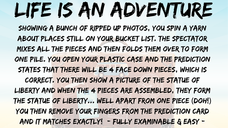 You then turn the prediction over to show a picture of the statue of liberty and when the 4 photos are assembled, they form the statue of liberty... WELL, apart from one piece that is from the Eiffel Tower.