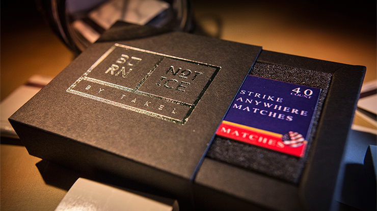 In his debut release with Murphy's Magic, Takel has brought us Burn Notice. Burn Notice takes the strongest elements of the mystery box and blends them with an organic every day object that everyone is familiar with: a simple match box. Place the matchbox in their hand and watch their eyes light up in disbelief as their card vanishes from the deck, only to be seen again when you slowly open the matchbox to reveal their signed card inside.