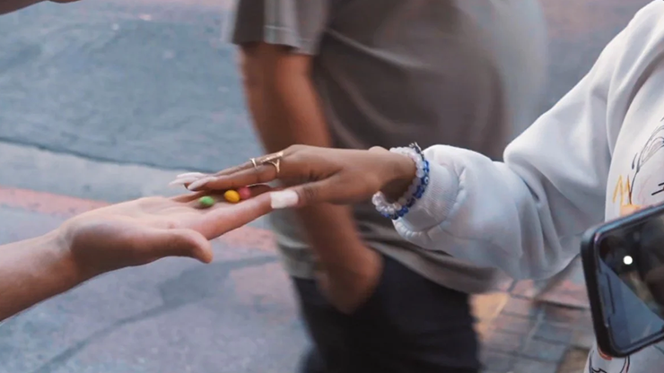Candy instantly appears out of nowhere - in the spectator's own hand!