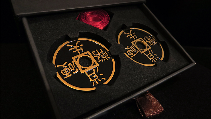 Troy Hooser's signature coin effect has been a mainstay of some of the best magicians in the world for years. Now you can get your hands on this gorgeous, brand new edition. The Charming Chinese Challenge is unlike any other coin trick. No coins flying from hand to hand or changing into other objects; just three Chinese coins inexplicably penetrating on and off a ribbon to the delight and surprise of spectators and magicians alike.