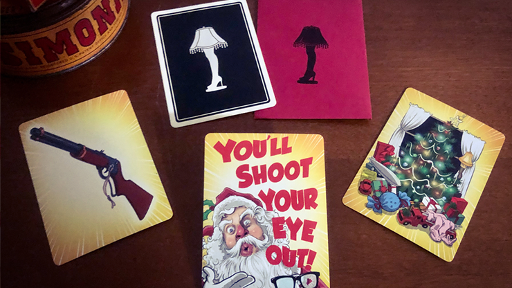 Christmas Monte comes with four beautifully crafted, poker-size playing cards, one showing a Christmas tree surrounded with presents, one showing a BB gun rifle, and two versions of the Santa kicker card, depending on which verbiage you prefer to use. All the cards have a memorable back design depicting an iconic leg lamp and comes with a perfectly sized, red envelope that is ink-stamped with the leg lamp to give it an aged, vintage look.