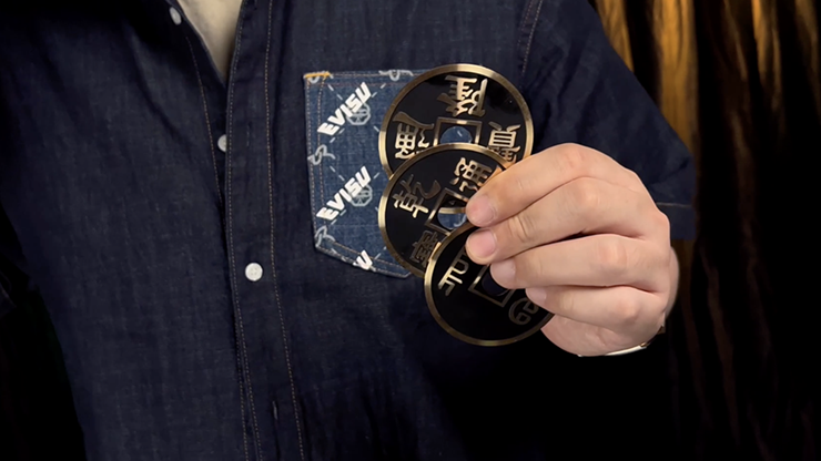 Now you can perform super triple coin effects with a jumbo Chinese coin.