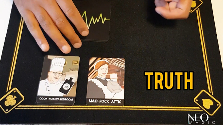"As with most of Vinny's effects, they are small in size, easy to perform, and yet pack a punch way above its size. Deception is no different here! Loosely based on a kind of Cluedo plot, the effect utilizes eight quality printed cards (Poker sized) and a mathematical principle that really brings this effect to life. The instructions are well thought out, and the effect itself plays easily and is almost instantly reset, which is a must for a working effect. And this IS a working effect! For the price, I think this is a steal!" - Mark Samuel Evans