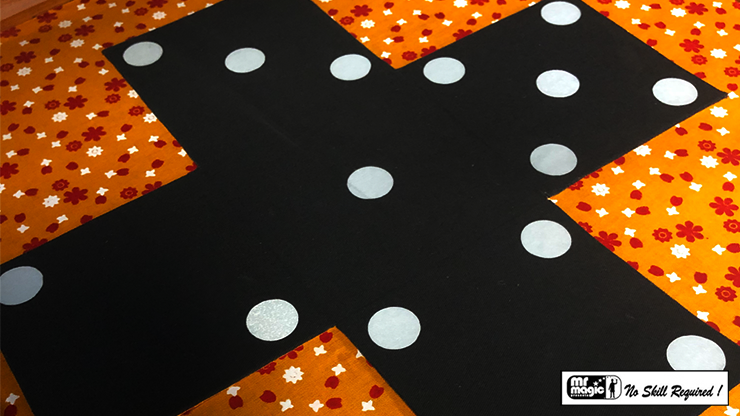 The performer displays a large die resting on a tray. He takes the die and suddenly smashes the die on the tray. The die instantly transforms into a big colorful ball. Instead of ball you may transform the die into a bunch of flowers, or a number of silks or any other item as you desire.