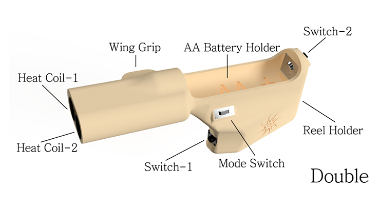 The fire bullet is made to fit the shape of your hand as a perfect grip! It is operated by a double switch method for the safety of performers, and is designed so that the fingertips will not be damaged.
