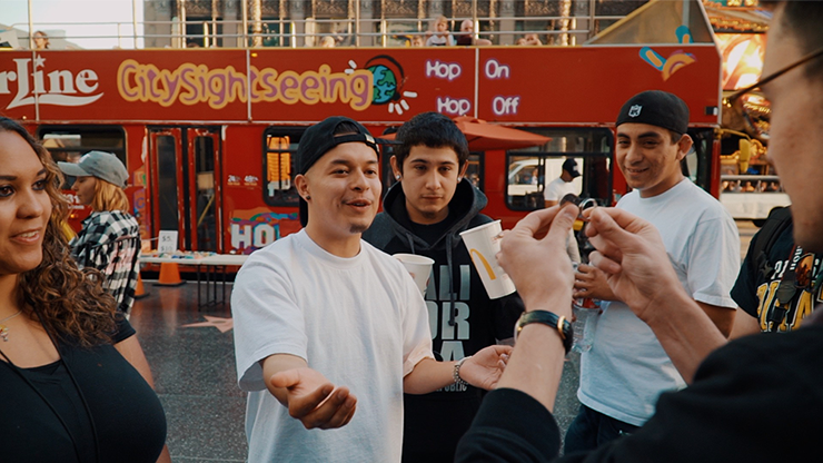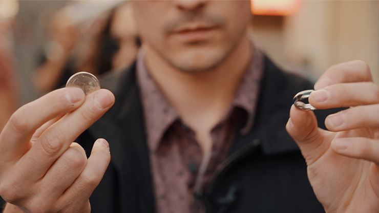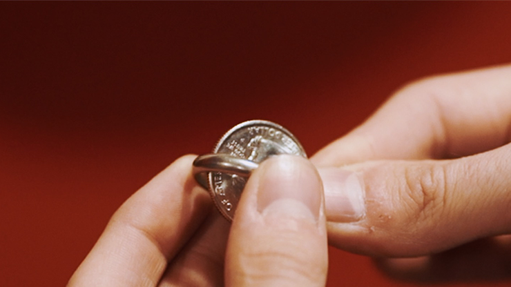 With just a little imagination, the performer defies physics and visually pushes the coin through the ring directly in front of the spectators' faces!