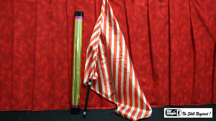 You place a plume inside a decorated tube. Even though the tube was previously shown empty, when the plume is pulled out, it has changed into a beautiful bouquet of flowers! A blue plume changes to yellow. An orange plume changes into a red and white flag. A red plume turns orange. A green plume turns into an umbrella! Each time a plume is placed inside the tube, it comes out either colored differently, or as a completely different item. Wow!