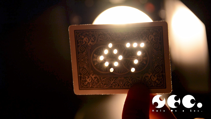 Hole On A Sec by Magic Action is bringing new meaning to the mysterious jumping holes. Numerous holes are punched on a single playing card. The holes would not just jump, but reveal the card your spectators have in their mind in a split second. With light passing through the holes, your audience can see the very moment the magic happens, like stars regrouping into a fortune telling horoscope.