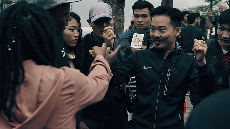 Hoodie Catches is the modern approach to the Card Stab effect, using an everyday hoodie. The spectator signs a card, which subsequently gets lost inside the deck. You now wrap a string from your favorite hoodie - the modern version of a sword - around the deck. Holding the hoodie string, you now pull it apart to create a beautiful card blossom effect in the air with only one signed card stabbed through its back! That's slick! It's so practical and so strong that the effect never fails to excite audiences. Imagine a finale for your card act that packs small and plays big for an entire roomful of people.
