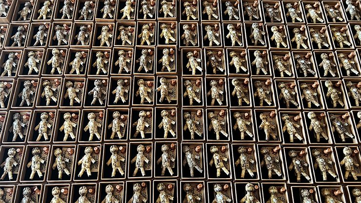 Ask your spectator to think of someone they don't like and explain that you can use black magic to seek some form of revenge. Any giggles will soon be drowned out by an eerie silence as you introduce a creepy coffin box. Inside... some sort of voodoo doll. Have this bizarre 'artifact' examined before placing it flat on your hand and instruct your spectator to imagine something bad happening to their victim of choice. All that's left to do is for them to stick the wooden pin into its heart to commence the dark spell. Under your control, the somewhat 'haunted' voodoo doll begins to rise... all on its own... right under your spectator's outstretched hand... until it's stood up straight looking them right in the eyes.