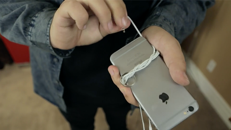 It's easy to do and comes with a gimmicked marker that facilitates everything. Use YOUR phone, YOUR earbuds, and anyone's ring. No alterations to your clothing is necessary, and once you have this special gimmick, the routine is impromptu and easy to perform.