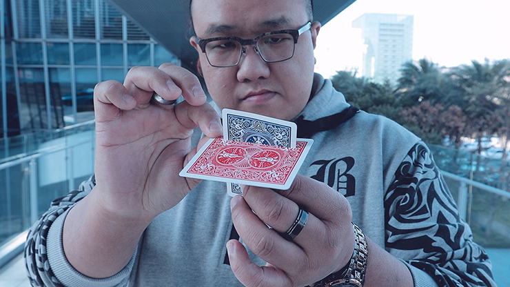 You receive everything you need to perform this effect. At the end, a simple switch allows both cards to be examined. If you wish, you can perform this penetration effect with a dollar bill. This looks hyper-visual and would make an ideal clip for social media or a television appearance, and yet it has the practical angles and handling benefits of being a worker piece in your strolling repertoire.