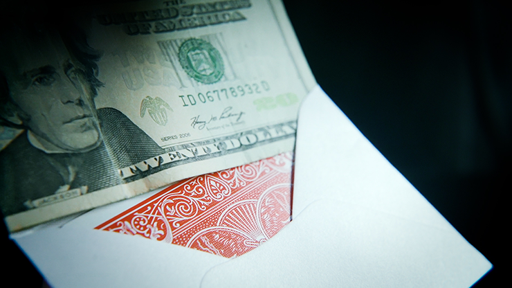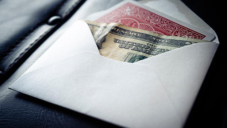 A regular Manilla envelope is freely shown on all sides and is placed on the table. Any card is selected, signed and then lost into the deck. You claim inside the envelope there is a $20 bill (any currency can be used). If you do not find the card, they can keep the money.