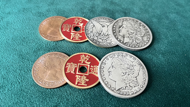 You hold four different coins in your hand, they are two silver Morgan coins, one copper coin, and one ancient coin. You close your palm and then open it again, 'There's only a silver Morgan coin left in your hand.'. The other three coins just disappeared like real magic!