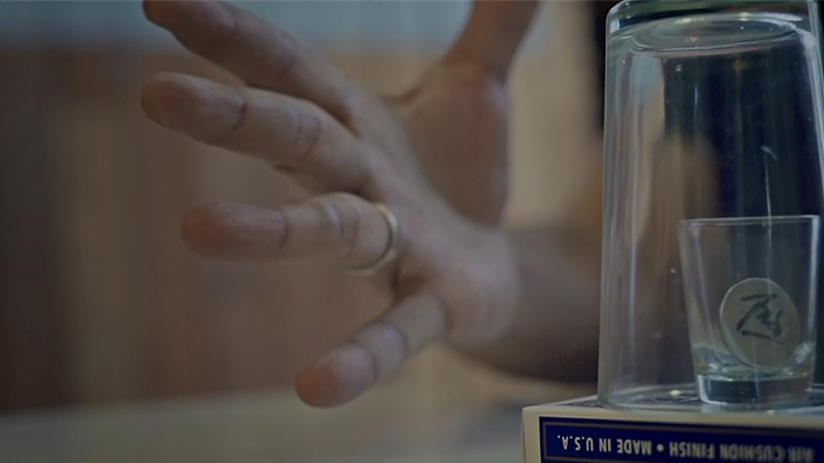 - A signed coin visually penetrates a solid glass, landing in a shot glass inside the larger glass!