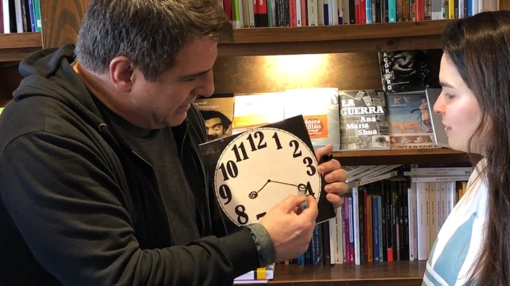 You have an image of a handless clock and ask someone form the audience to randomly choose an hour and minutes. You draw the hands with a marker on the clock, and immediately reveal that your prediction matches their selections!