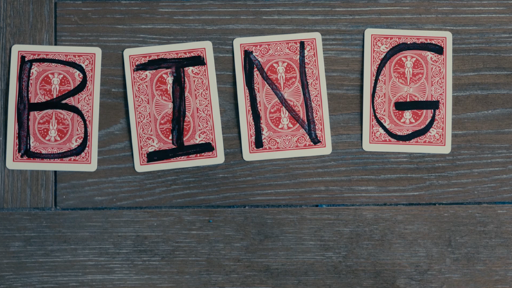 The first card has a big Sharpie B The next card an I Then an N... and finally...G