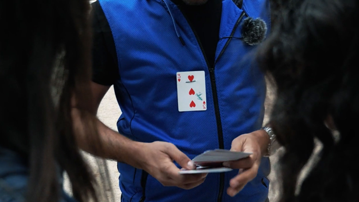 This is only one possible presentation of Pinned Card Reborn, you will be able to use it in many situations: close-up, cocktail, parlor, street magic, kids show etc....Everything will depend on where you want to put the safety pin, on your t-shirt, jacket, tie, towel, plush. A world of possibility is opening up for you.