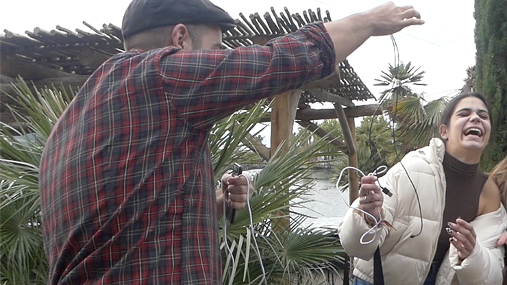 Power Bank is a modern, simple and fun premise, where, for example, a cell phone is at stake. The cell phone can be of the magician, or it can be that of someone in the audience. A series of telephone cables, chargers, headphones, cords... are wrapped around the cell phone in question, but only one of them is really tied to it. Whoever manages to find it, gets to keep it...you are one pull away to win a new phone...or loose it...