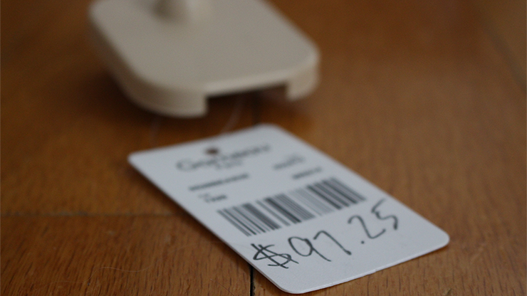Any numbers named instantly appears on a price tag hanging from ANY PART OF YOUR CLOTHING. - Inside your jacket - On your back - On the back of your shirt (with your jacket over it) - Under the collar of your jacket - and more...