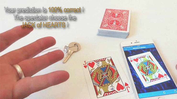 Only one keyring (no switching) Only one QR-CODE (nothing to add or take away) No gimmicked deck, use your own or a spectator's The prediction is different each time Use your spectator's phone; the phone is ungimmicked Completely portable; keep it on you every day, ready to astound at any moment Always ready to go, no setup or reset Easily mastered in 30 minutes If you already have an app for scanning QR-CODES on your smartphone you are READY INSTANTLY to present this curious experiment! If not, you're ready to go as soon as you download any FREE QR-CODE scanning app from the App Store or Android