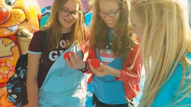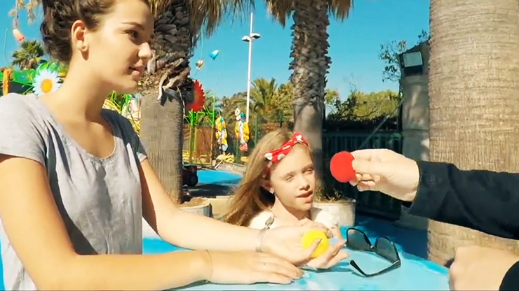 Touch the yellow ball and the red ball and the spectator will end up with two red balls!
