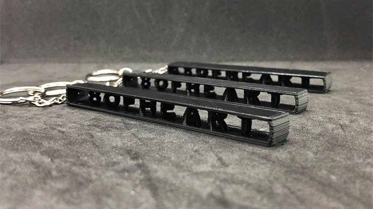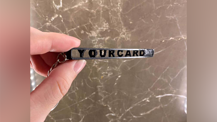 The audience felt that a card was randomly selected from the 52 playing cards (8 of Heart in this example). The magician showed the key ring, and the prophecy on it reads the card "Your card".