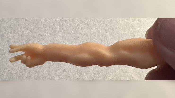 The arm is just barely over three inches in length and made of an incredibly strong resin. As you can see, it's a rather muscular arm. In fact, when Jeff McBride saw it, he remarked...