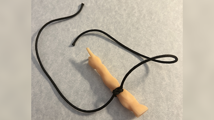 As you can see in the pic below, the Spirit Pointer consists of a disembodied arm with the forefinger of the hand extended. This is not just a doll's arm that has been repurposed. It has been created from the ground up specifically for this effect. It is tied to the center of a length of cord.