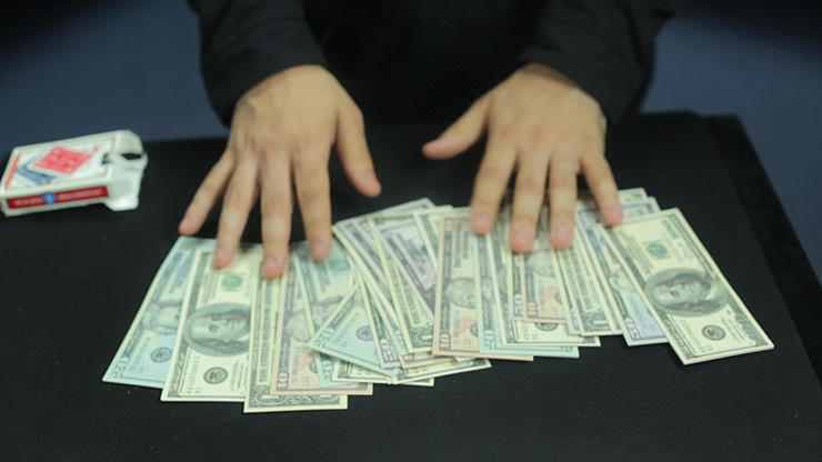 In a FLASH the ENTIRE deck of cards turns into a fat stack of 100, 50 & 20 bills!