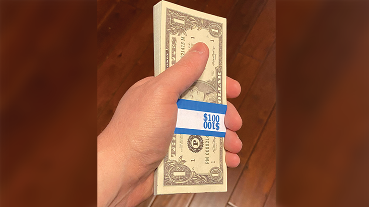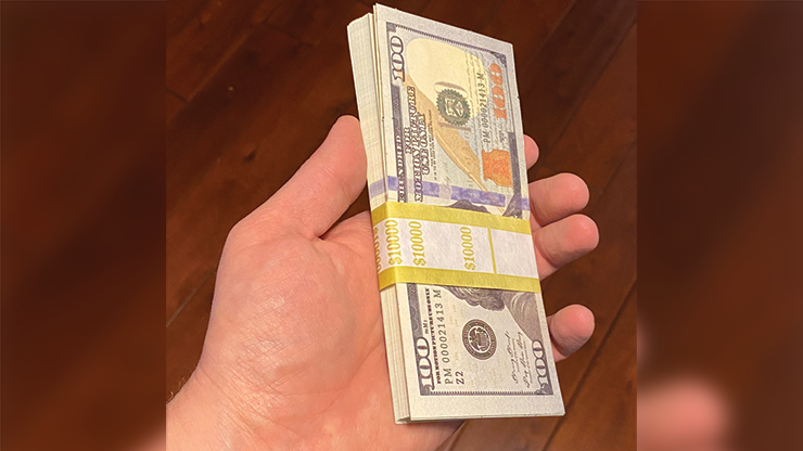 Note that these are not real hundred dollar bills you are purchasing. However, they do look very realistic. The company that custom makes them does so for the television and movie industry. DJT offers "magic money" switch out packs. Perhaps you'd like some "fake hundos" to put at the back of the stack to give away or lead into another effect with.