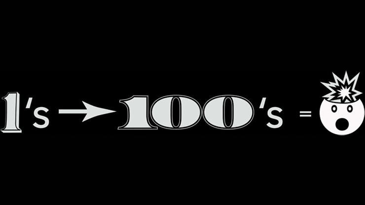 A stack of one-dollar bills magically and visibly change to all one-hundred dollar bills!