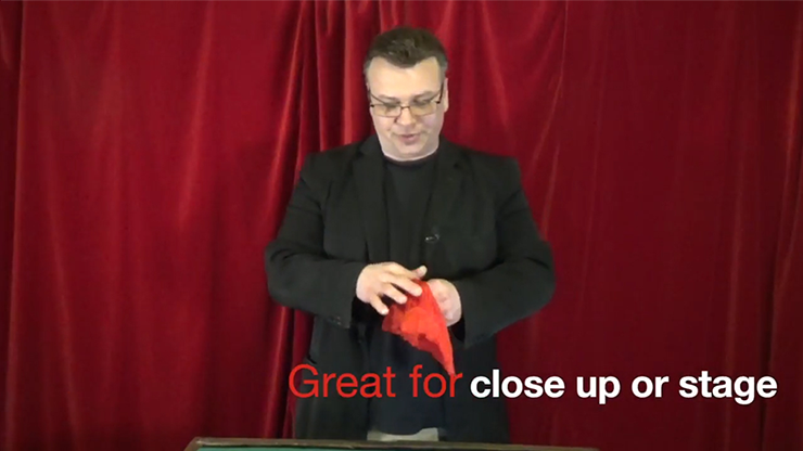 Scott has taken the classic Color Changing Silks and given it a fresh and modern approach by adding a two-phase killer ending that seems totally impossible. After changing the silks from white to red several times in funny and engaging ways, you then produce a chain of multicolored handkerchiefs and then immediately make them vanish, leaving the audience's jaws wide open.