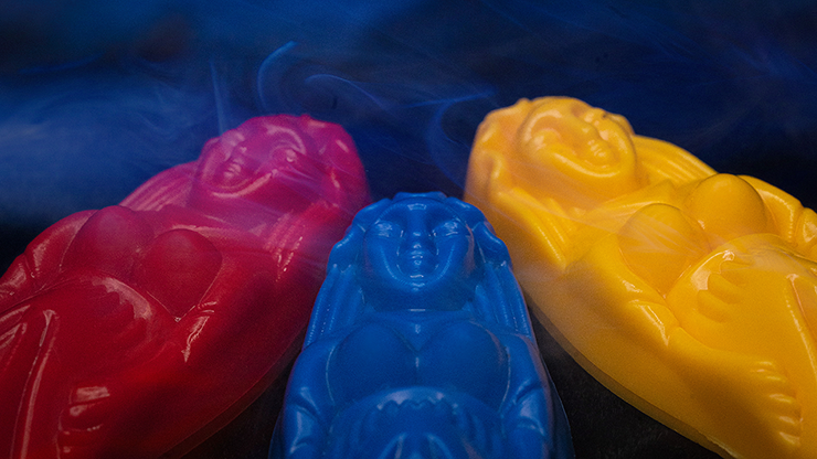 In this fun version of the effect, you show three different colored Mummies (red, blue and yellow) and a black Sarcophagus. You tell the story of three different Egyptian Mummies (Nefertit, Cleopatra and Nitigret).