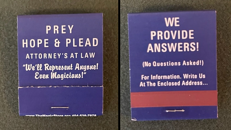 Match-out comes with one Insurance pack of matches and one attorneys pack of matches.