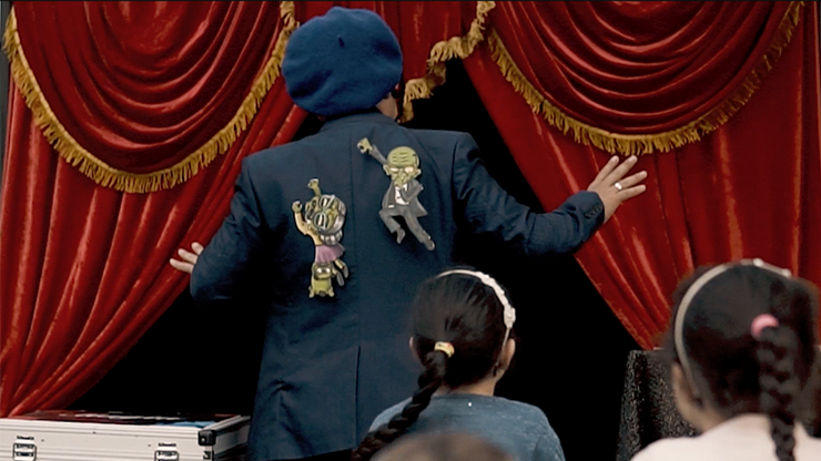 When he turns around to place the book aside, all the children will see the zombies hanging on the magician's back and pointing again to him, bursting into laughter!