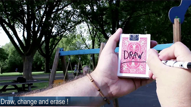 CHANGE A card is chosen. You write the name of the card in big letters on the case. Moment of truth - you show your prediction as the spectator reveals his selection. Oh no! You are WRONG! You place the case face down on the table and concentrate. You turn over the case... As impossible as it seems, your prediction has changed. It is now 100% correct! No suspicious moves; the prediction changes by itself.